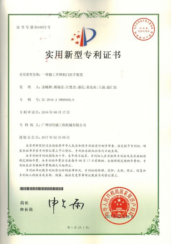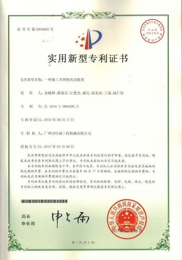 廣州市特威工程機(jī)械有限公司地處廣州市白云區(qū)神山鎮(zhèn),廣清高速神山出口附近,是一家施工升降機(jī)的專(zhuān)業(yè)生產(chǎn)廠家。公司成立于2011年,占地100000多平方米,注冊(cè)資金1060萬(wàn)元,現(xiàn)有員工300余人其中工程技術(shù)人員33人,高級(jí)技術(shù)人員52人。